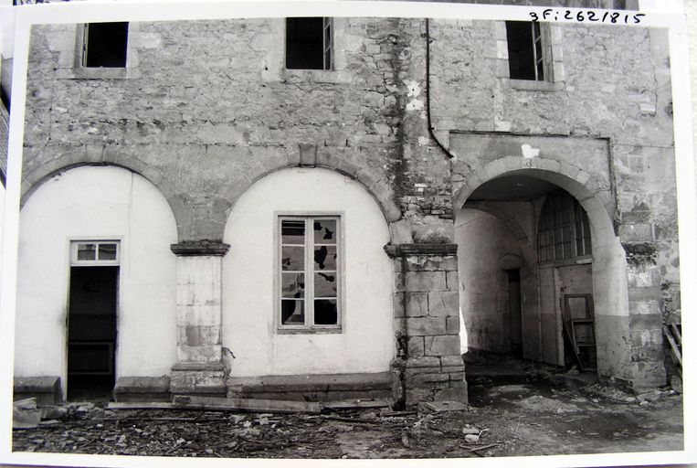 Détail du cloître et corps de passage en cours de destruction. 1968. Cliché Thomas-Lacroix. AD Morbihan 3 Fi 262/815.Immatriculation