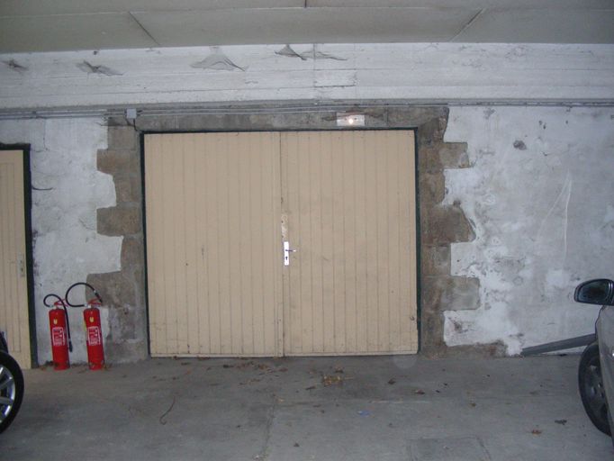 Entrepôt commercial, mur et porte sud.Immatriculation