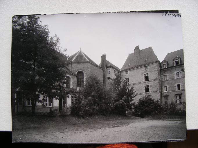 Corps de logis, extrémité nord-est et chevet et bras nord de l'église, photo vers 1960. Cliché Thomas-Lacroix. AD Morbihan 3 Fi 262/1614.Immatriculation