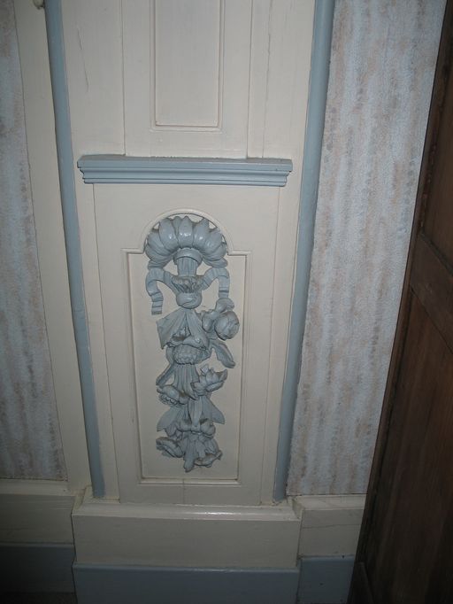 Corps central, couloir axial, décor de lambris.Immatriculation