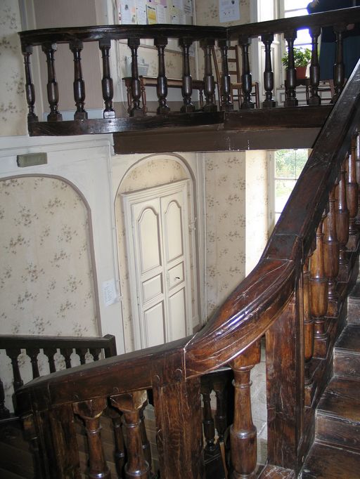 Escalier, partie haute de la volée et balustrade du palier.Immatriculation