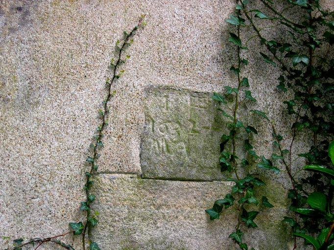 Logis à l'est de la cour, détail pierre datée 1632.Immatriculation