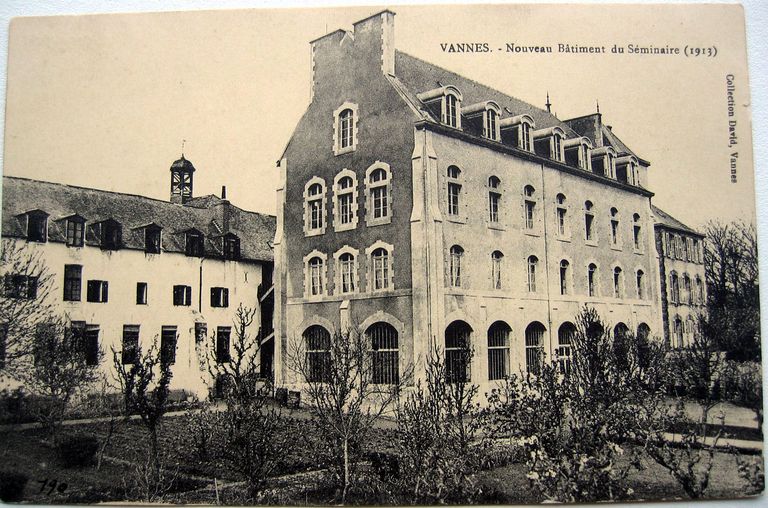 Nouveau bâtiment du Séminaire, 1913. Carte postale ancienne, coll. David, Vannes. AD Morbihan 9 Fi.Immatriculation