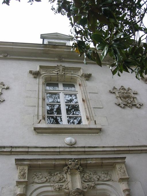 Elévation antérieure, travée centrale, fenêtre de l'étage.Immatriculation