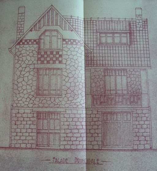 Plan datant du milieu du 20e siècle de la façade principale de la maison de villégiature Les GlycinesImmatriculation