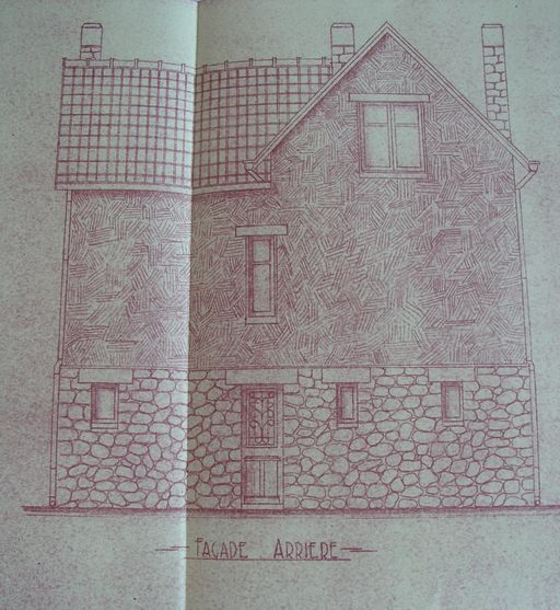 Plan datant du milieu du 20e siècle de la façade arrière de la maison de villégiature Les GlycinesImmatriculation