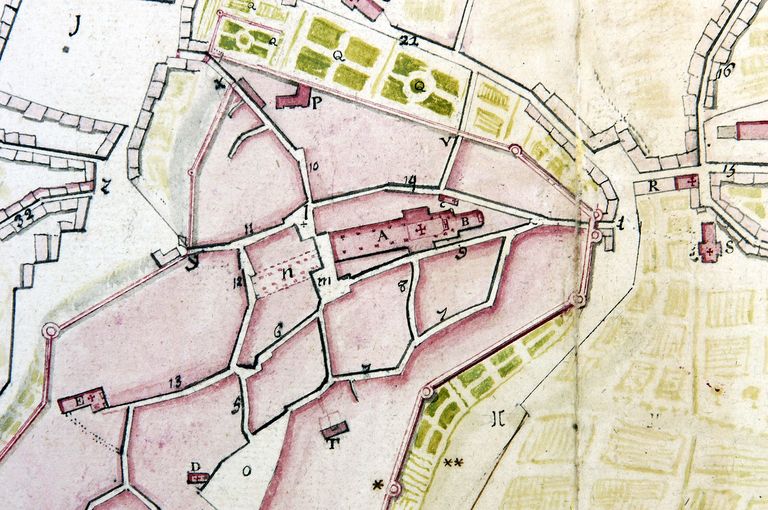 Description historique... du président de Robien : plan de Vannes, intra-muros et partie sud : fig.11 vsur le plan. Milieu du 18e siècle. Bibliothèque de Rennes-Métropole.Immatriculation
