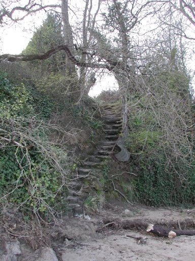 Vue de l'escalier en pierre taillée du Rieu, qui débouche sur le site de la pêcherieImmatriculation
