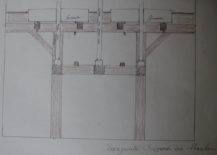 Charpente et support des meules (dessin de Jean Peillet)Immatriculation