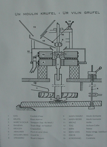 Description en breton des différents éléments d'un mécanisme de moulin à vent (dessin de l'Encyclopédie, G. Pouliquen)Immatriculation
