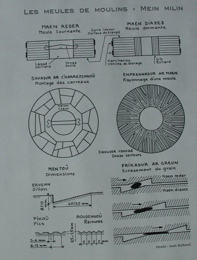 Description en breton des meules d'un moulin à vent (dessin de l'Encyclopédie, G. Pouliquen)Immatriculation