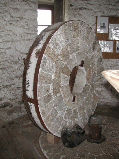 Vue de la meule débout, utilisée pour moudre le grain pour les bêtesImmatriculation
