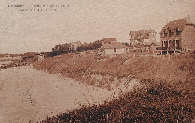 Pointe et plage de l'Islet : remarquer les maisons d'architecture balnéaire sur la dune encore peu érodée (carte postale, collection particulière)Immatriculation