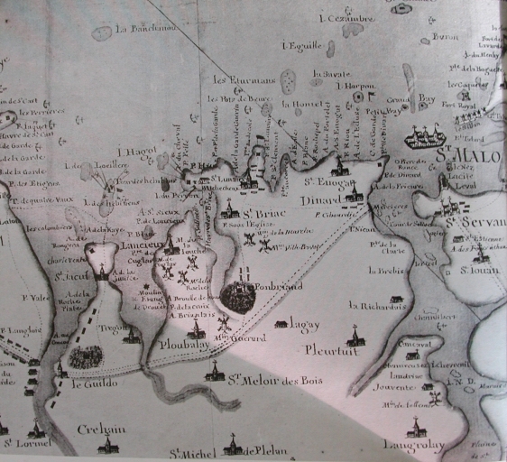 Détail de la carte levée en 1756 du Chevalier Mazin, de St-Paul à Pontorson (collection particulière)Immatriculation