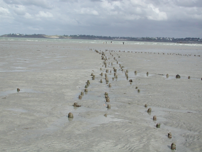 Vestiges des bouchots des Juméliaux : remarquer la double rangée de piquets des bouchotsImmatriculation