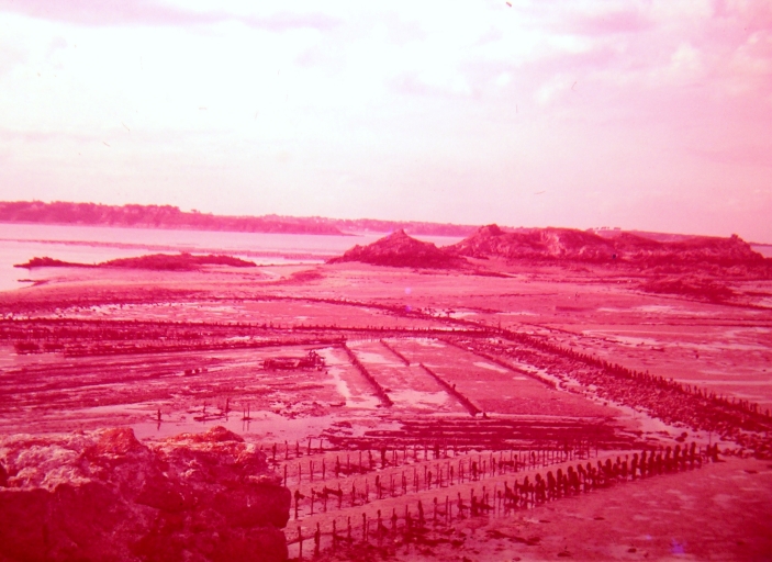 Situation des bouchots à moules et des tables à huîtres vers 1955-56 : à l'est de Grande Roche et de la Colombière : remarquer l'emplacement des anciennes pêcheries ou écluses (collection particulière)Immatriculation