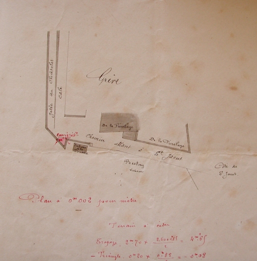 Plan de situation du front de port du Châtelet en 1877 : remarquer l'emplacement de la cabne de douane (AD 22)Immatriculation
