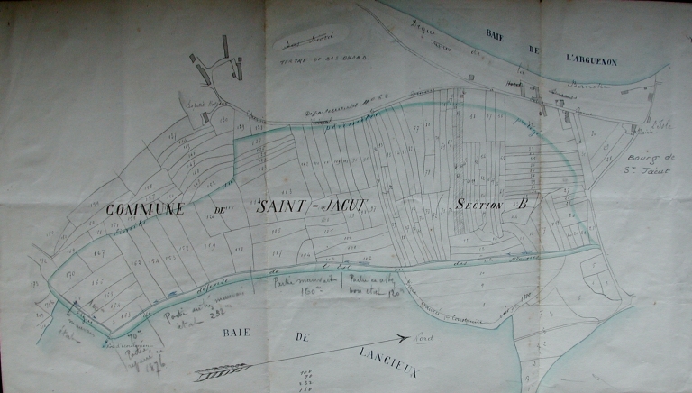 Plan daté de 1887 : Etat des lieux de la digue des Moines, avec les parties à restaurer (AD 22)Immatriculation