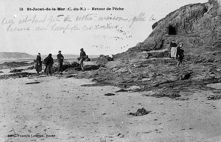 Pêcheurs à pied au début du 20ème siècle, dans la grève, à la Pointe du Chevet (carte postale, AD 22)Immatriculation