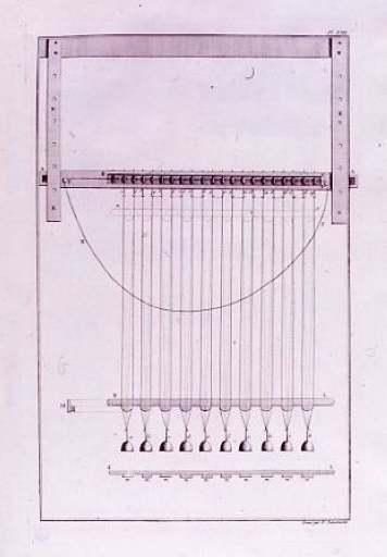Dessin d'un rouet : traité des Pesches de Duhamel du Monceau, 18ème siècle (collection particulière)Immatriculation