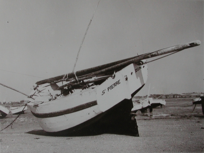 Vue du 'Saint-Pierre' à l'échouage à la Houle Causseul en 1983 : remarquer les tangons pour la pêche aux maquereaux (collection particulière)Immatriculation