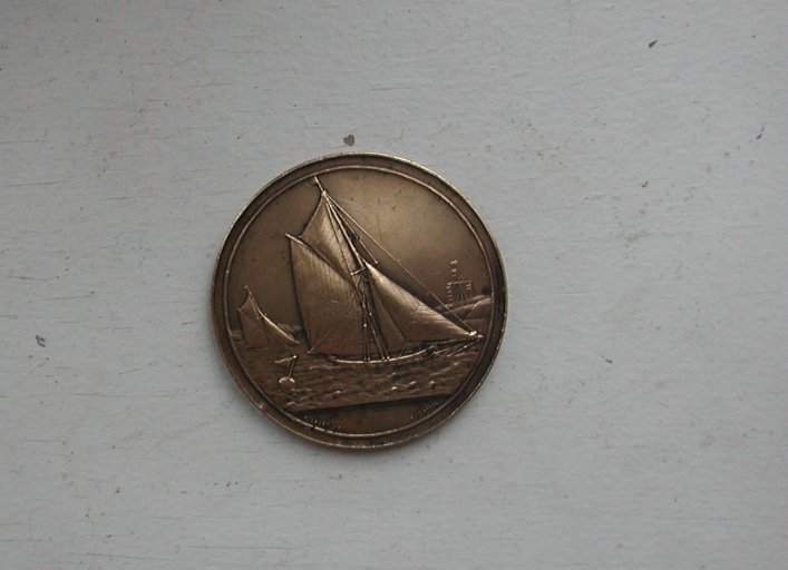 Vue de la médaille obtenue en régate par Pierre Aubin en 1930Immatriculation