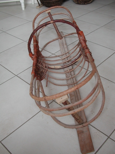 Vue de l'anse de la carrée et des maîtres-plons d'un panier à maquereaux en cours de réalisation par Alain PaitryImmatriculation