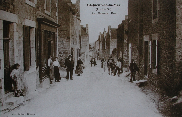 la Grande Rue, dite la rue de l'Abbaye, avec ses nombreux cafés, au début du 20ème siècle (collection particulière, Amis du Vieux St-Jacut)Immatriculation