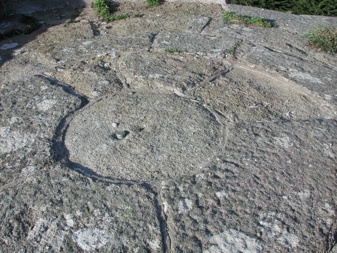Vue de détail du dessin des pierres et de leur agencement sur la petite terrasse de la tourelle d'observationImmatriculation