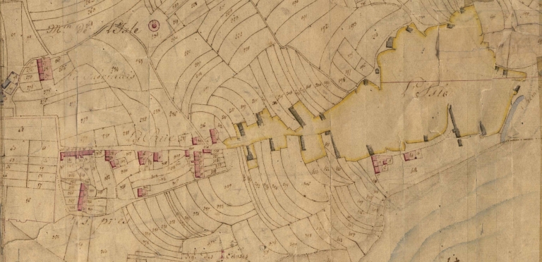 Extrait cadastral, section A, 1827.Extrait de plan cadastral, 1827. AD Côtes-d'Armor : 4 num 1/16, plans cadastraux parcellaires de 1827.