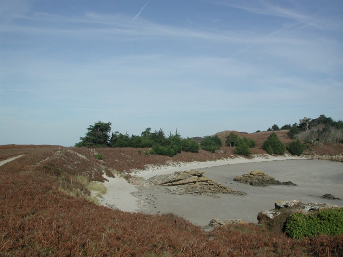 Vue du cordon dunaire de l'île des Ebihens (espace protégé)Immatriculation