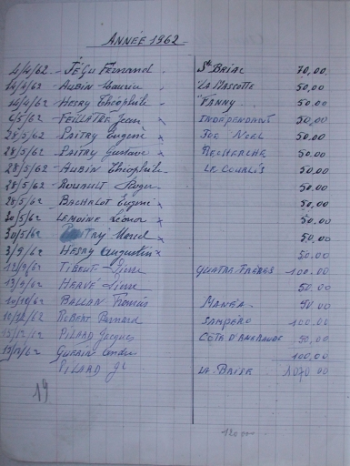Liste nominative des cotisants en 1962 (collection particulière)Immatriculation