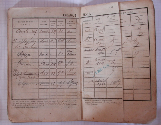 Livret maritime de François-Eugène Levavasseur, inscrit maritime à la grande pêche et au commerce, à partir de 1906 (collection particulière)Immatriculation