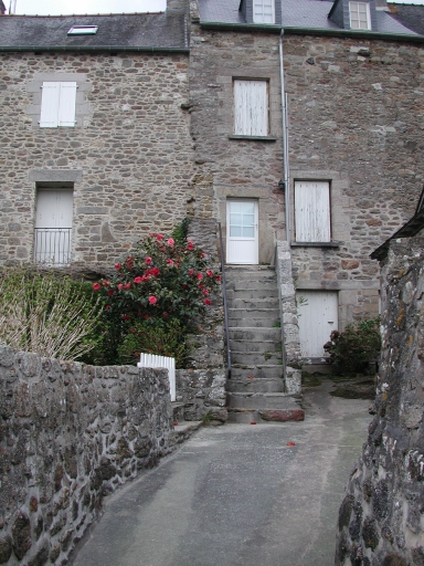 Vue de détail : remarquer l'escalier qui permet d'accèder au rez-de-chaussée surélevéImmatriculation