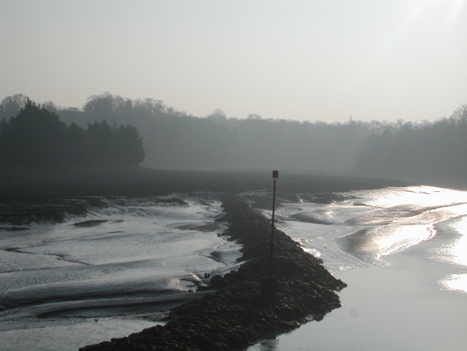 Créhen, l'Arguenon. Vue de l'estuaire à marée basse : remarquer l'épi rocheuxImmatriculation