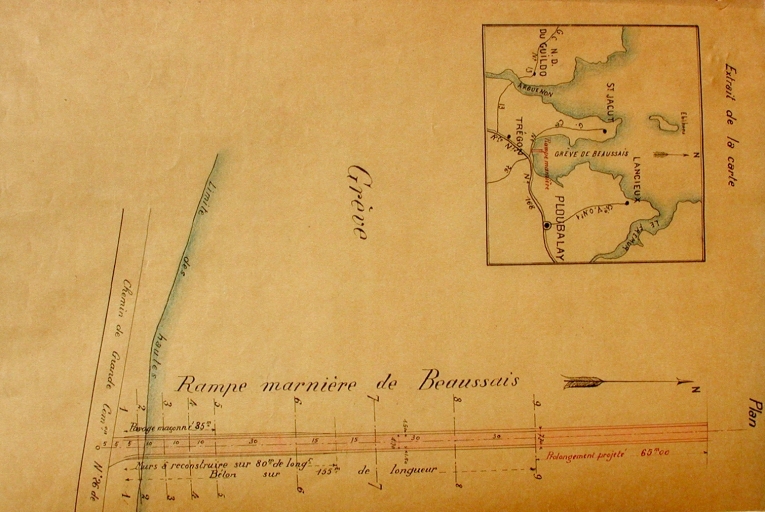 Plan de la rampe marnière de Beaussais et son prolongement projeté en 1909 (AD 22)Immatriculation