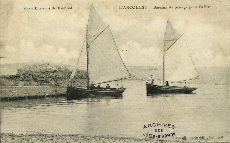 Bateaux de transport à passagers, gréés en sloop à la cale de l'Arcouest, vers 1905 (AD 22, 16 Fi)Immatriculation