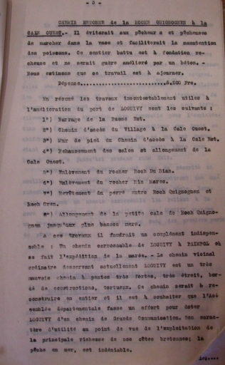 Liste des aménagements du port de Loguivy, estimés nécessaires à réaliser par l'Administration en 1920 (AD 22)Immatriculation