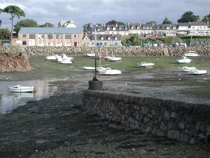 Vue du front de port Est depuis la petite cale : remarquer le magasin à marée et l'habitat traditionnel des marins pêcheurs au TourotImmatriculation
