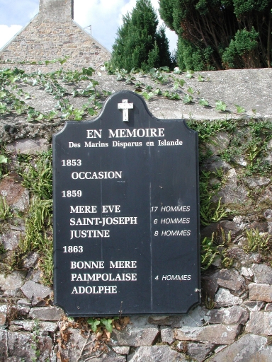 Vue du nouveau 'Mémoire' en bois, apposé par la Municipalité de Ploubazlanec, en mémoire des marins perdus en mer d'Islande, 1853, 1859, 1865Immatriculation