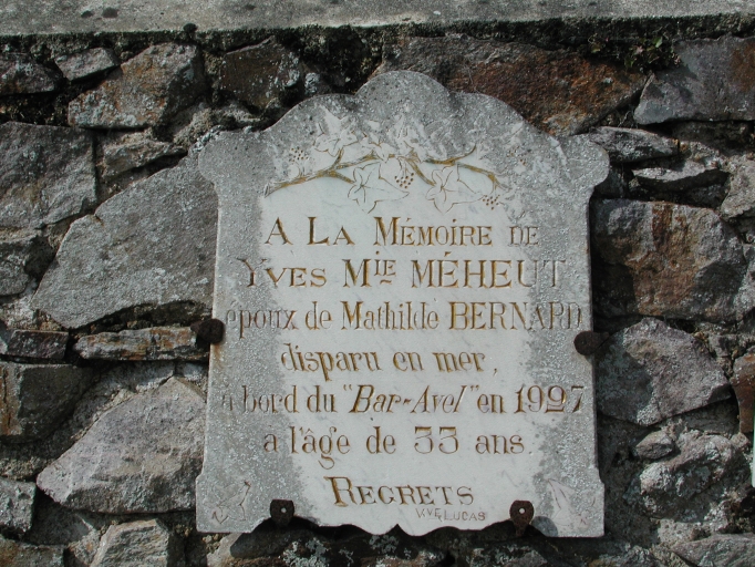 Vue de l'un des derniers 'Mémoires', pour le naufrage du 'Bar Avel' en 1927 et le décés de Yves-Marie MéheutImmatriculation