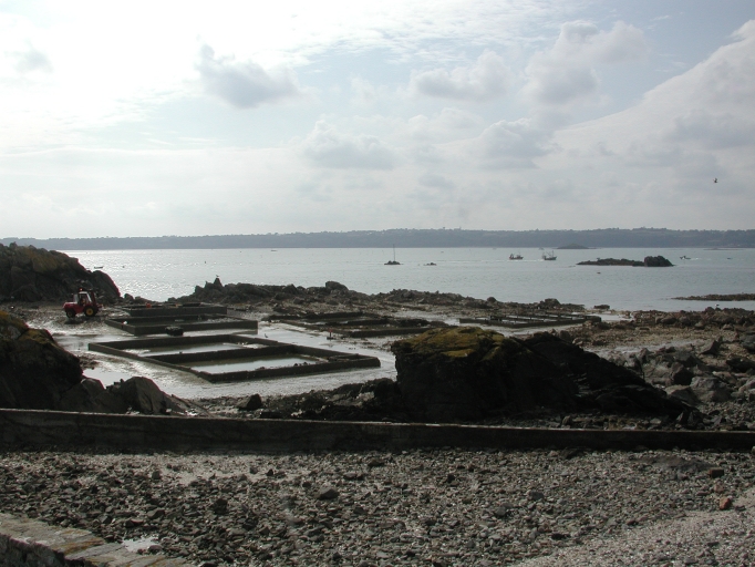 Vue des anciens viviers en pierre et en ciment à l'extérieur du portImmatriculation