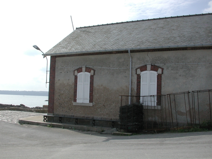 Vue de la façade Ouest de l'ancien abri de sauvetage, avec le terre-plein et la voie de circulation à côtéImmatriculation