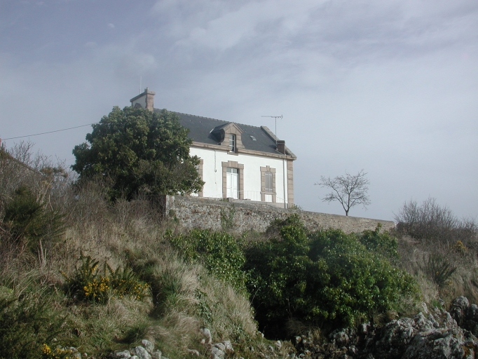 Vue de la maison-phare (entourée d'un mur de ceinture) dans son environnementImmatriculation