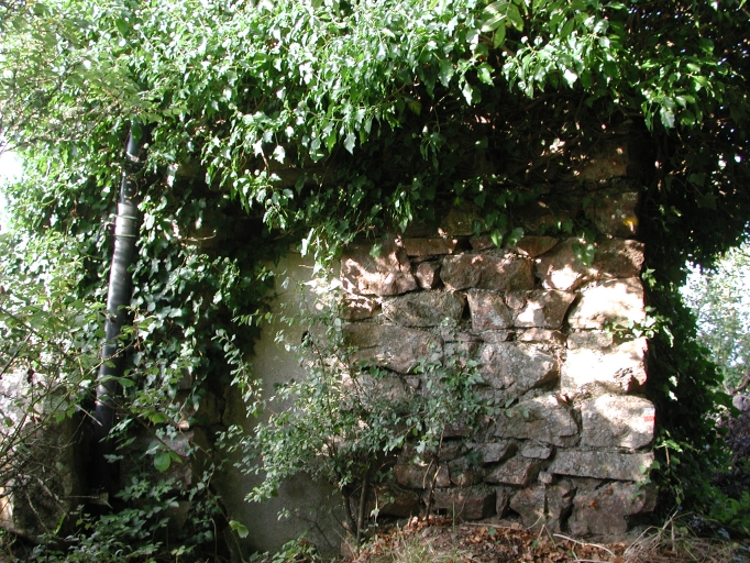 Vue du mur en moellons de la façade Sud du blockhaus du Trieux, à l'emplacement d'un ancien corps de gardeImmatriculation