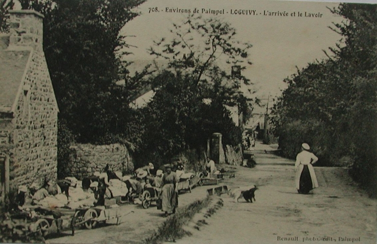 Vue de l'ancien lavoir sur la route du port de Loguivy, début 20ème siècle, disparu aujourd'hui (carte postale, collection particulière)Immatriculation
