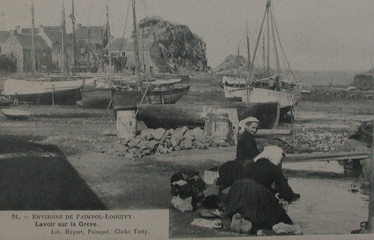 Vue de l'ancien lavoir du port de Loguivy, début 20ème siècle, disparu dans les années 1960 (carte postale, collection particulière)Immatriculation