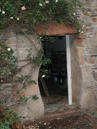 Vue de l'ouverture qui donne accès à un cellier : remarquer la forme taillée des pierres d'angle des montantsImmatriculation