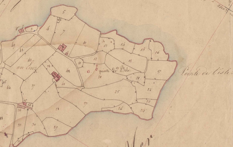 Extrait du cadastre de 1832, section A : la pointe de l'Arcouest, dite 'pointe de l'Ile' (AD 22)Immatriculation