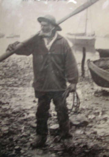 Dorig Morvan, ancien marin pêcheur et pilote du port de Loguivy, début 20ème siècle : remarquer le vêtement et le port des sabots (carte postale, collection particulière)Immatriculation